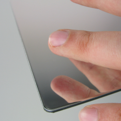Le DIBOND® miroir possède les mêmes caractéristiques d’usinage que le DIBOND® standard, mais les possibilités de cintrage et de pliage sont limitées. Comparé à d'autres matériaux réfléchissants, le DIBOND® miroir est plus facile à découper (la surface du miroir ne s'effrite pas), à façonner et à fixer.