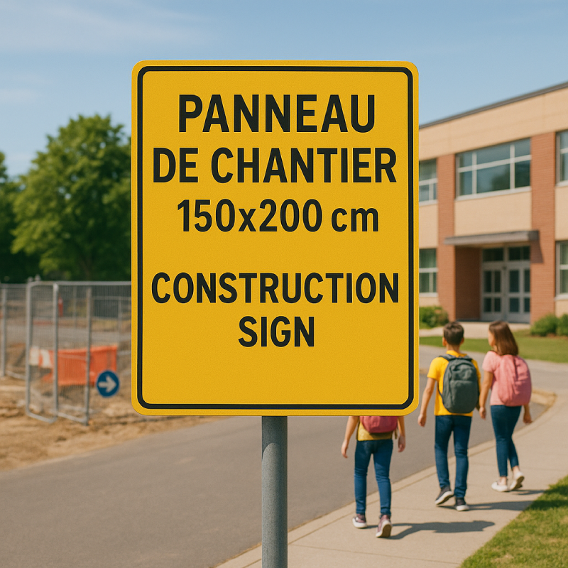 Panneaux de chantier extérieur, le format 150x200 cm permet d'afficher les travaux d'une agglomération, les travaux d'une communauté de commune ou les travaux de chantier d'une ville pour l'aménagement au bord des écoles, des lycées et des universités.